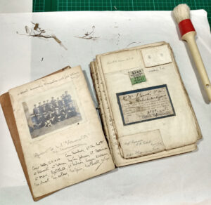 Hand written diary from WWII capturing all the details of life aboard ship stationed across the Mediterranean during the war. Ports, manoeuvres, encounters with enemy combatants as well as the daily activities and duties of the shipmen, visitors to the ship, events, shore leave, social parties, pictures, postcards, drawings and sketches all bring this historical record vividly to life. It was very important to our client to save as much as possible from all the original materials although they were in a much deteriorated condition. We readily appreciate this priority and cleaned, restored and remounted all materials onto the new binding. Here’s what our client said: