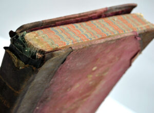 The Royal School of Needlework at Hampton Court Palace has an outstanding topical library for use in their workroom. This useful and practical volume was in such a fragile state that it was unfit for use by students within their programmes. We lifted all original materials, repaired and rebound the volume onto internal support cords. We then cleaned, preserved and remounted the original cover material in keeping with the orignial look and feel of the volume while providing a strong and reliable structure for the future.
