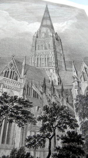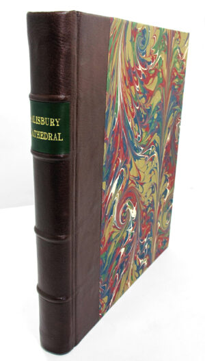 ‘History of Salisbury Cathedral’ and environs published by special subscription with complete description, history and including many fine etchings and views of the exterior and interior of the cathedral. Rebound in leather with hand marbled papers for private collection.