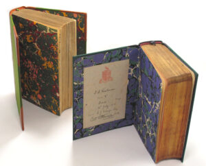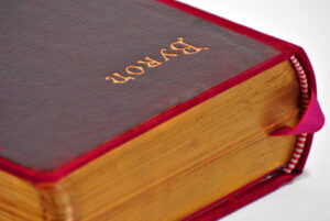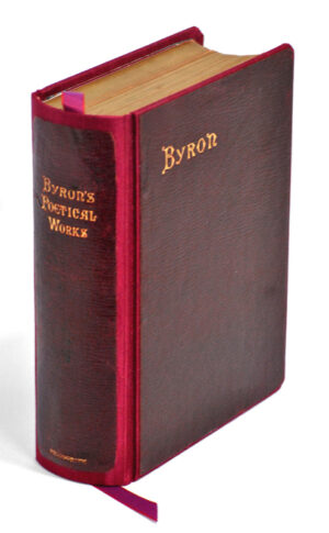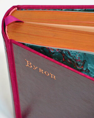 The collected works of Lord Byron repaired and rebound in luxury cloth binding, hand marbled endpapers and silk page ribbon with the original cover materials cleaned, polished, preserved and remounted in keeping with the original look and feel of this presentation volume.