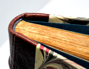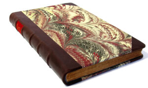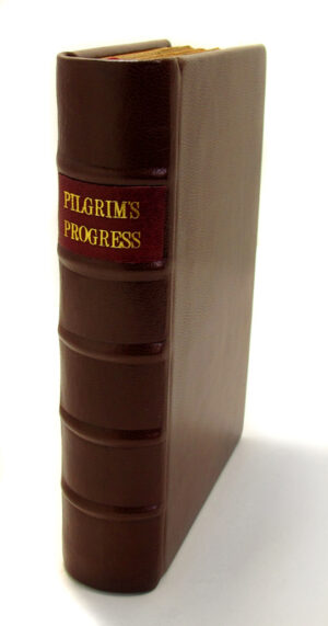 ‘The Pilgrim’s Progress’ by John Bunyan is a landmark in English literature. First published in 1678, it has never been out of print. This historical copy rebound for a private collection in full leather corded binding with hand marbled endpapers, headbands, silk page ribbon and gilt spine titling. Extensive cleaning and archival paper repairs were carried out prior to rebinding.